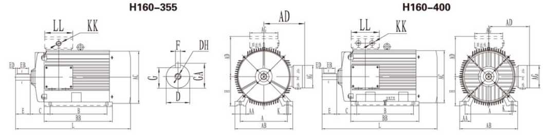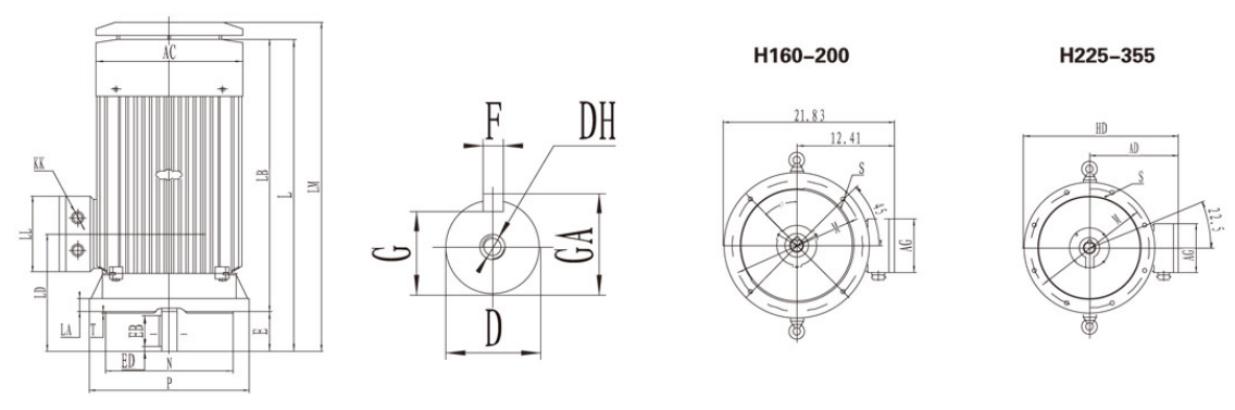 该系列电机的功率范围:0。75KW-315KW;底座中心高度:H80-H355。